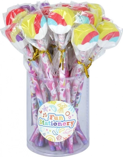 Bleistift mit Einhorn und Regenbogenradiergummi