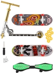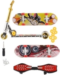 Set aus Finger-Skateboards und -Scooter mit Schraubzubehör
