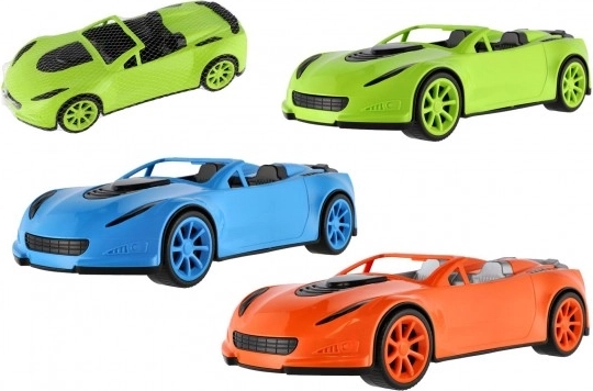 Der große Sportwagen aus Kunststoff mit offener Karosserie begeistert kleine Rennfahrer mit seinem realistischen Look und der sanften Fahrt im Freilauf. Passt ins Kinderzimmer und auf den Spielplatz – leicht, robust und dank der Verpackung im Netz einfach zu tragen.