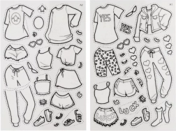 Im Set enthalten sind 8 verschiedene Models, 2 Bögen mit Kleidungsschablonen und 12 farbige Klebefolien. Fertige Entwürfe lassen sich mit Accessoires weiter verzieren – für einen noch ausdrucksstärkeren Look. Das Set fördert die Fantasie und bietet stundenlangen Bastelspaß ohne Chaos.