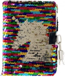 Stylisches geheimes Tagebuch mit beidseitigen Pailletten, die beim Darüberstreichen Aussehen und Farben ändern. Für mehr Privatsphäre verfügt das Tagebuch über ein Metallschloss mit Schlüsselchen, innen befinden sich leere, unliniierte Seiten zum Schreiben und Zeichnen. Die kompakten Maße 11 × 15 × 2 cm machen es zum idealen Begleiter für Schule und Reisen. Wir liefern einen Mix aus Motiven und Farben je nach Lagerverfügbarkeit.