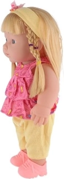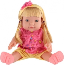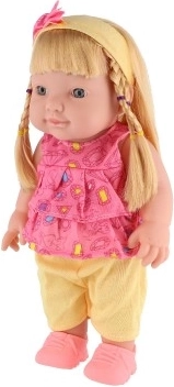 Niedliche Puppe mit festem Kunststoffkörper und langen Haaren sorgt für stundenlangen Spielspaß für kleine Mamas. Dank integrierter Elektronik gibt sie Geräusche von sich, läuft mit 3× AG13 Batterien (im Lieferumfang enthalten) und wird in einem praktischen Plastiktäschchen geliefert. Ideales Spielzeug für Kinder ab 3 Jahren.