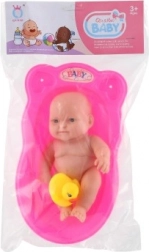 Diese niedliche Puppe in der Badewanne mit Entchen ist das perfekte Spielzeug für Kinder, die Baden lieben und echte Babypflege nachahmen möchten. Dank der kompakten Größe von 20 cm liegt sie auch kleineren Kindern gut in der Hand und bietet eine sichere, spielerische Förderung der Feinmotorik und sozialer Fähigkeiten.