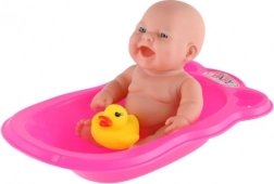 Enthalten sind eine rosa Kunststoffwanne und ein gelbes Entchen, die zu kreativem Spiel und eigenen Geschichten anregen. Leuchtende Farben und das einfache Design fördern die visuelle Stimulation und ziehen die Aufmerksamkeit der Kinder auf sich.