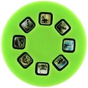 Leichte Kunststoff-Taschenlampe mit unkompliziertem Einlegen der Scheiben und sanftem Drehen für einen fließenden Bildwechsel.