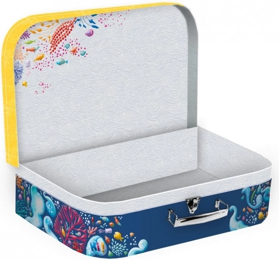 Der SchulKoffer besteht aus hartem Karton und ist oberflächig laminiert, was für Robustheit und Langlebigkeit sorgt. Dieser stilvolle Kinderkoffer ist ideal zur Aufbewahrung von Schulutensilien und Kleinigkeiten, die Ihr Kind täglich benötigt.