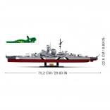 Komplexe Aufbauten, Geschütztürme und Antennen aus 1849 Teilen erzeugen das authentische Erscheinungsbild des legendären Schlachtschiffs.