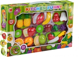 • Alles Nötige im Set – Obst, Gemüse, Schneidebrett und Kunststoffmesser.
