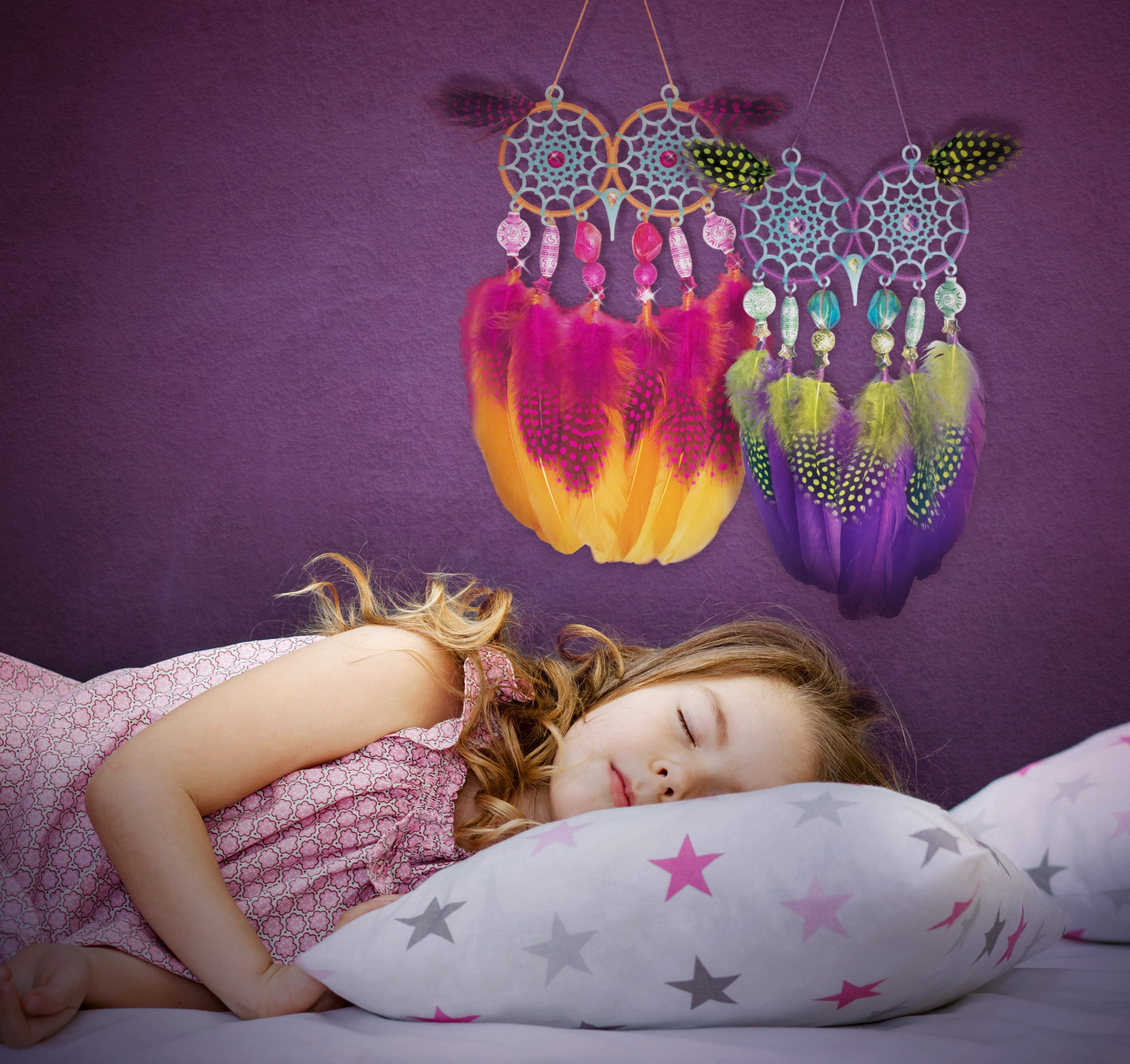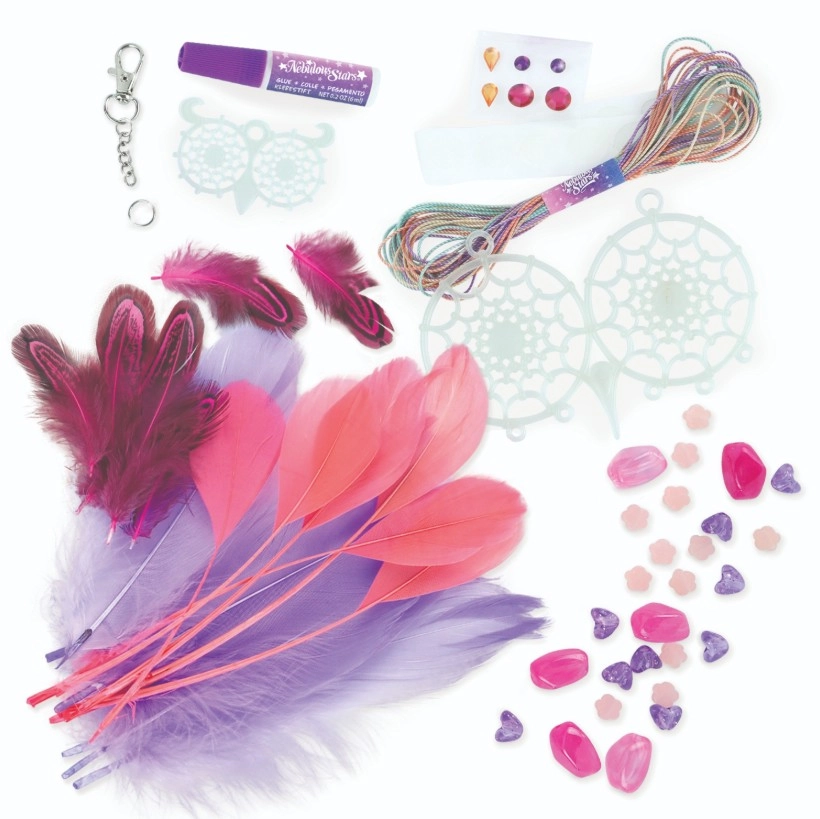 Entdecke die magische Welt des Bastelns und ein ruhiges Einschlafen. Das Nebulous Stars Set enthält alles für die Herstellung von zwei Eulen-Traumfängern, deren Augen und Fäden im Dunkeln leuchten. Die Dekoration kommt neben dem Bett oder im Kinderzimmer besonders schön zur Geltung und verleiht ihm einen zarten, leuchtenden Zauber.