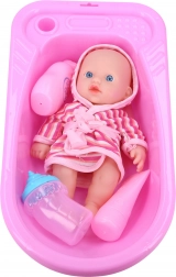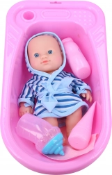 Badeset mit Puppe bietet ein realistisches Badeerlebnis für Ihre Kinder. Enthält eine Badewanne und ein Handtuch für bequemes Abtrocknen.