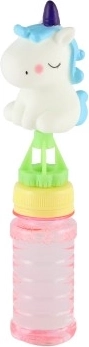 Die Einhornfigur im Deckel macht aus einer gewöhnlichen Seifenblasenflasche ein Lieblingsspielzeug. Verspielte Details und Farben begeistern auf den ersten Blick.