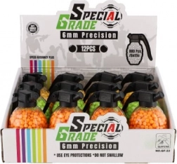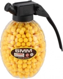 Ergänzen Sie Ihre Ausrüstung um ein praktisches Kugel-Set in einer originellen Dose in Granatenform. Darin finden Sie 800 Gummikugeln mit 6 mm, die dank der auffälligen Farben leicht zu finden und zu kontrollieren sind. Dank des komfortablen Verschlusses füllen Sie das Magazin schnell und ohne Unordnung nach.