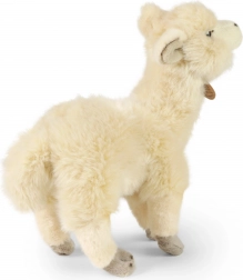 Detailreiche Verarbeitung, stehende Haltung und ein liebenswerter Ausdruck sorgen dafür, dass Kinder und Erwachsene die Alpaka ins Herz schließen.