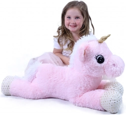 Ausgearbeitete Details wie das goldene Horn, die gepunkteten Hufe sowie die kuschelweiche Mähne und der Schweif unterstreichen seinen märchenhaften Look. Das große 70-cm-Format bietet reichlich Platz zum Umarmen und schenkt Kindern beim Ausruhen ein Gefühl von Sicherheit und Geborgenheit.