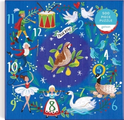 Das Puzzle Zwölf Weihnachtstage begeistert mit einer eindrucksvollen Illustration und erstklassiger Qualität. Es ist in einer sehr stabilen und attraktiven Schachtel aus recycelter Pappe verpackt, die eine wiederholte Verwendung und Aufbewahrung ermöglicht. Die Teile haben eine matte Oberfläche, die eine originalgetreue Wiedergabe von Details und Farben gewährleistet, und die Rückseite ist mit einer glatten, angenehm anzufassenden Beschichtung versehen.