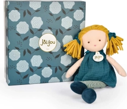 Die Puppe Jade von Doudou Jolijou ist eine sanfte Begleiterin für Babys und Vorschulkinder. Ihr Boho-Look wird durch gestreifte Strümpfe, ein türkisfarbenes Kleid und „Spaghetti“-blonde Haare in Zöpfen unterstrichen. Dank der weichen Stoffausführung ist sie ideal zum Kuscheln und maximal sicher.