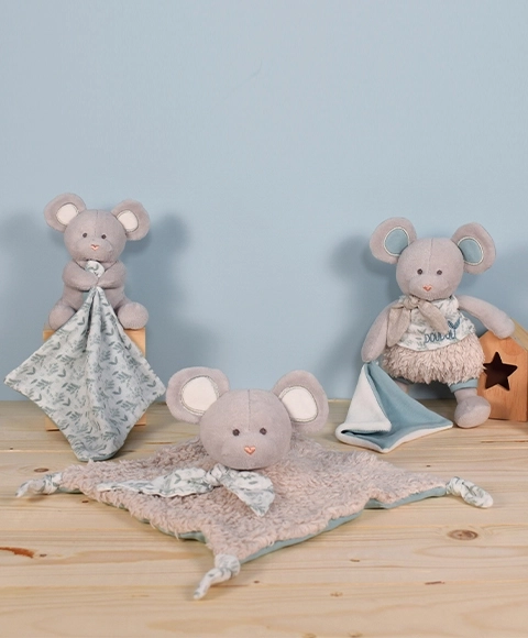 Doudou Geschenkset – Plüschmaus mit Decke aus Bio-Baumwolle
