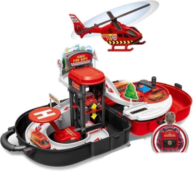 Entdecke unterwegs Spaß mit dem kompletten Spielset im Rucksack zum Thema Feuerwehr. Kinder können alle Teile leicht mitnehmen und überall spielen – bei der Oma, auf dem Spielplatz oder im Urlaub. Dank 37 Teilen, einschließlich Fahrzeug und Flugzeug, gestalten sie spannende Rettungsmissionen und eigene Geschichten.