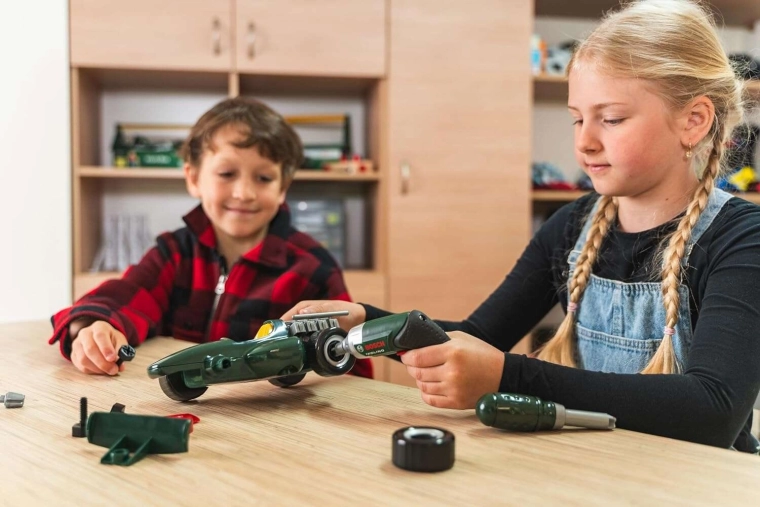 Konstruktionsset Rennwagen mit Akku-Schrauber BOSCH im Koffer für Kinder KLEIN