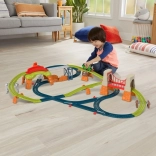 Dieses Gleis-Set von Fisher-Price ermöglicht kleinen Eisenbahnern, vielfältige Strecken zu bauen und kreative Anordnungen zu gestalten. Bestandteil des Sets ist die angetriebene Lokomotive Peter, die auf den Gleisen bergauf und bergab fahren kann, wodurch Attraktivität und Spieldauer weiter steigen.
