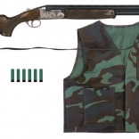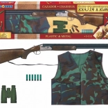 Schrotflintenset mit Weste Gonher, ideal für kleine Jäger. Die Schrotflinte besteht aus robustem Kunststoff und Metall, mit der Möglichkeit, Knallplättchen für realistischere Klangeffekte einzulegen.