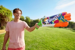 Genießen Sie sommerliche Wasserschlachten mit der Wasserpistole X-SHOT Fast-Fill Pump Action, die Sie in 1 Sekunde befüllen. Sie bietet einen 700-ml-Tank, eine Reichweite bis zu 9 m und einen Pumpmechanismus für einen kräftigen und präzisen Wasserstrahl.