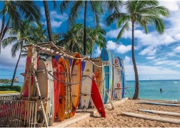 Genießen Sie tropisches Flair zu Hause mit dem Puzzle mit dem ikonischen Motiv des WAIKIKI-Strands. Die Teile greifen perfekt ineinander, die Oberfläche ist angenehm glatt und die Farben kommen auch an der Wand im Rahmen hervorragend zur Geltung.