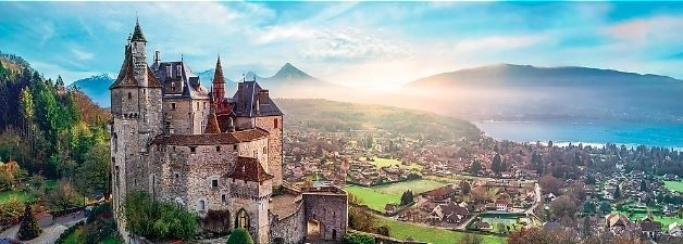 Das Panorama-Puzzle mit dem romantischen Motiv des Schlosses Menthon über dem Lac d’Annecy begeistert Liebhaber schöner Ausblicke ebenso wie erfahrene Puzzler. Dank des Panoramaformats wirkt es an der Wand besonders gut und wird zur stilvollen Dekoration Ihres Interieurs.