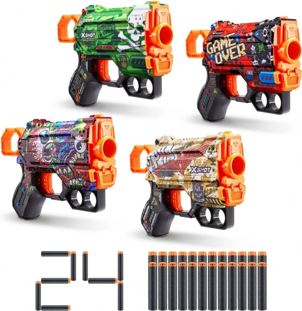 X-SHOT Skins bringt die Welt der spielerischen Personalisierung in die Realität. Dieses preiswerte Menace 4 Pack bietet vier kompakte Blaster in einzigartigen Designs, mit denen Sie in jeder Schlacht glänzen. Dank leichter Konstruktion, sicherem Griff und schnellem Nachladen liegen sie ideal in der Hand – für Kinder und spielerische Duelle mit Freunden.