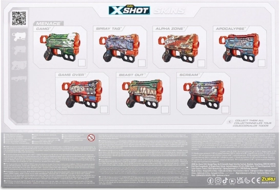 Verfeinern Sie Ihren Stil auf dem Spielfeld dank der X-SHOT SKINS Drucktechnologie. Im Set finden Sie die Designs Camo, Game Over, Scream und zusätzlich den exklusiven Skin Alpha Zone.
