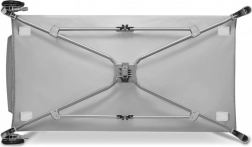 Das Bett lässt sich einfach zusammenklappen und transportieren, was es ideal für Reisen macht. Dank der Räder können Sie es leicht an verschiedene Orte bewegen.