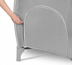 Das Bett ist mit einem Netz für optimale Luftzirkulation ausgestattet, das es den Eltern auch ermöglicht, leicht auf ihr Kind zu achten. Die praktische seitliche Tasche ist ideal zur Aufbewahrung der Lieblingsspielzeuge Ihres Kindes und der durch einen Reißverschluss verschließbare seitliche Eingang des Laufstalls erhöht seine Funktionalität zusätzlich.