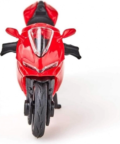 Detailgetreues Modell der Ducati Panigale 1299 von SIKU: Metallausführung, lenkbares Vorderrad und klappbarer Ständer in ikonischem Rot.