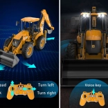 Der realistische RC-Baulader/Bulldozer im Maßstab 1:20, inspiriert von JCB-Maschinen, sorgt für viel Spaß drinnen und draußen. Die Steuerung mit 2,4 GHz ermöglicht eine flüssige Fahrt vorwärts/rückwärts und Lenken nach links/rechts. Per Fernbedienung hebt und senkt sich die vordere Schaufel, zudem gibt es Beleuchtung in der Kabine und realistische Motorgeräusche. Gummilaufflächen auf den Rädern erhöhen die Traktion und Stabilität auf verschiedenen Untergründen.