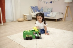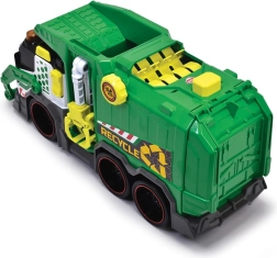 Müllwagen Müllwagen mit Licht- und Soundfunktion. Ausgestattet mit einem automatischen Hebezeug für Mülltonnen, Greifzange, mechanischem Müllverschluss und inklusive Mülltonne im Set.