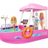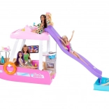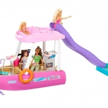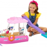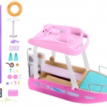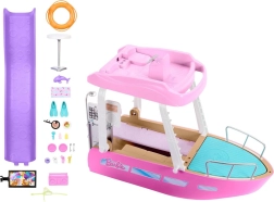 Dieses stylische Boot mit den Abmessungen von ca. 91 cm Breite und 30 cm Höhe bietet viel Platz für Puppen und ihre Freunde. Kinder können das Boot auf dem Oberdeck steuern, in der Sonne entspannen und über die lila Rutsche direkt in den blauen Pool rutschen. Das abnehmbare Oberdeck gibt den detailliert gestalteten Innenraum für einfaches Spielen frei.