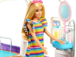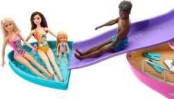 Lass die Puppen sicher über die breite Rutsche direkt in den abnehmbaren Pool gleiten. Ideal für Sommergeschichten, Partys an Bord und Erfrischung während der Fahrt.