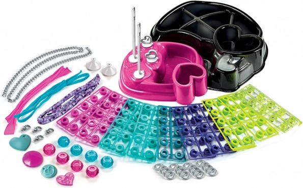 Das CRAZY CHIC Armband-Herstellungsset ist ideal für kleine Designerinnen, die Farben und Mode lieben. Dank der praktischen herzförmigen Basis, den Saugnapfhaltern und der übersichtlichen Organisation der Teile können Kinder Schmuck leicht und mit Freude gestalten.