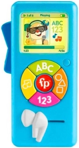 Dieses unterhaltsame und interaktive musikalische Spielzeug von Fisher-Price kombiniert auf unterhaltsame Weise das Lernen und Spielen. Der tragbare Musikspieler sieht aus wie ein MP3-Player und wird mit fünf Stilen von lehrreichen Liedern, einem beleuchteten Display mit spielerischen Grafiken und verschiedenen Spielelementen zur Entwicklung feinmotorischer Fähigkeiten geliefert.