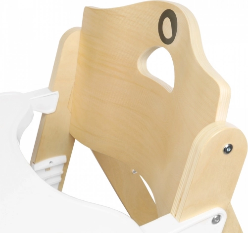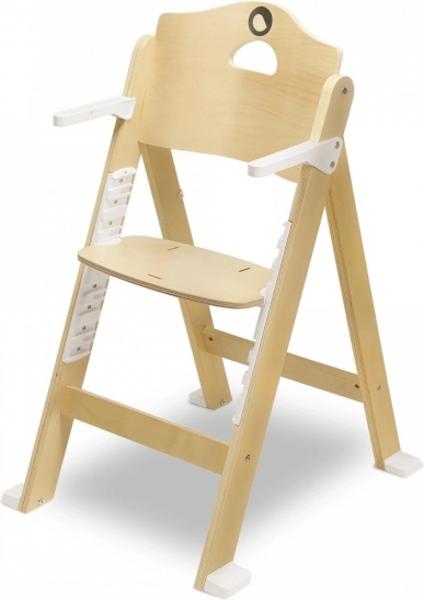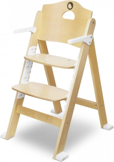 Der robuste Rahmen aus Naturholz und langlebigen Kunststoffelementen sorgt für Stabilität und Sicherheit. Der 5-Punkt-Sicherheitsgurt hält kleinere Kinder zuverlässig, während ältere den Stuhl ohne Tablett direkt am Familientisch nutzen können. Ein praktischer Griff erleichtert das Tragen, und für die Einstellung ist kein Werkzeug erforderlich.