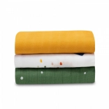 Drei Windeln im Format 70 × 70 cm mit unterschiedlichen Motiven für den täglichen Gebrauch – für den Kinderwagen, zum Stillen, Wickeln oder als leichte Decke.