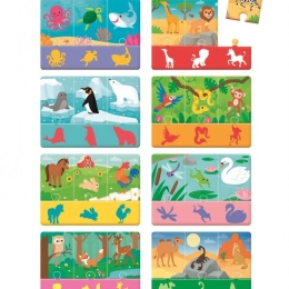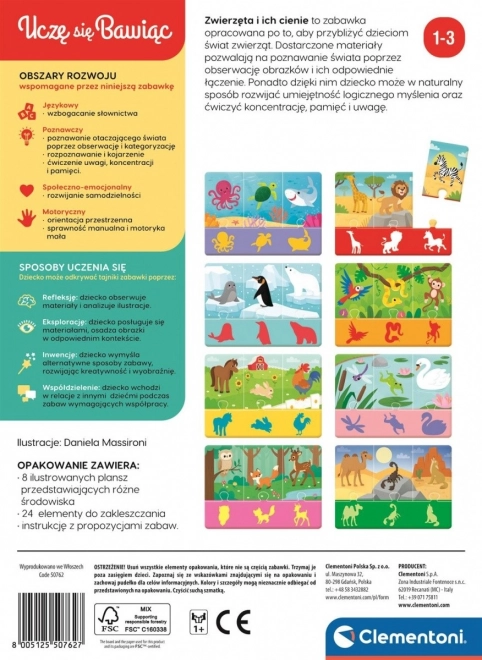 Das Rätsel „Tiere und ihre Schatten“ ist ein Spielzeug, das entwickelt wurde, um Kindern die Welt der Tiere näherzubringen. Die mitgelieferten Materialien ermöglichen ihnen, die Welt durch das Betrachten von Bildern und taktiles Erkunden kennenzulernen. Darüber hinaus erlauben sie dem Kind, auf natürliche Weise logisches Denken zu entwickeln und Konzentration, Gedächtnis und Aufmerksamkeit zu üben.