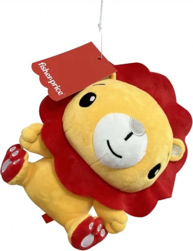 Dieser Löwe trägt die vertrauenswürdige Marke Fisher-Price, bekannt für die Qualität und Sicherheit ihrer Spielzeuge.