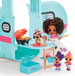 Der L.O.L. Surprise! Glam N' Go Camper ist das ultimative Fahrzeug für deine L.O.L. Surprise Puppen, mit dem sie stilvoll reisen können. Das Wohnmobil enthält über 50 Überraschungen zum Auspacken, mehr als 10 Bereiche zum Spielen und Treffen und bietet Platz für LOL Surprise OMG Modepuppen sowie LOL Surprise Puppen. Das Heck des Campers lässt sich öffnen. Nach dem Spielen können alle Accessoires und Teile im Inneren verstaut werden.