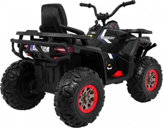 Kräftiges und stabiles Kinder-Quad, das dank 4 Federstoßdämpfern, hoher Bodenfreiheit von 21 cm und breiten EVA-Schaumrädern (35 × 15 cm) Unebenheiten souverän meistert. Mit der Wahl des Antriebs von 2 oder 4 Rädern passen Sie den Fahrspaß leicht an Gelände und Können des Kindes an.