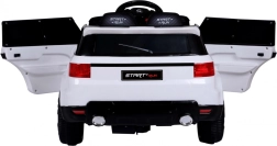 Das Fahrzeug ist mit LED‑Scheinwerfern und ‑Rücklichtern, einer gut ablesbaren Ladezustandsanzeige und einem Multimediapanel mit Unterstützung für MP3, USB, SD und AUX ausgestattet. Für Komfort sorgen Stoßdämpfer an beiden Achsen, Kunststoffräder 21 × 7 cm und öffnende Türen mit Verriegelung. Der breite Sitz mit Sicherheitsgurten ist ideal für eine bequeme Fahrt.