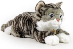 Diese graue getigerte Katze ist der ideale Begleiter zum Kuscheln, Spielen und Einschlafen. Präzise Handarbeit und das detailreiche Tabby-Muster verleihen ihr ein authentisches und niedliches Erscheinungsbild, das Kinder sofort lieben werden. Weicher, angenehmer Plüsch sorgt bei jeder Umarmung für Komfort.