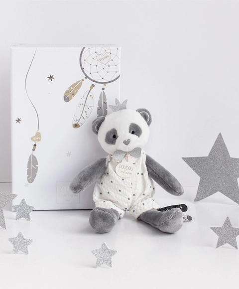 Der niedliche Plüschpanda aus dem Doudou-Geschenkset erfreut Babys ab der Geburt. Er besteht aus kuschelweichem Premium-Plüsch, schenkt Sanftheit, Komfort und eine beruhigende Umarmung, ist geeignet ab der Geburt und entspricht den europäischen CE-Normen. Ein toller Geschenk-Tipp – präsentiert in einer eleganten Geschenkbox.