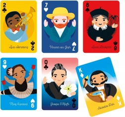 Entdecken Sie die Mudpuppy Spielkarten „Kleiner Künstler“ mit farbenfroh illustrierten Porträts inspirierender Kreativer. Das Set enthält 52 Karten + 2 Joker, besteht zu 70 % aus recyceltem Papier und ist mit ungiftigen Tinten bedruckt. Die praktische Schubschachtel sorgt für einfaches Verstauen. Ideal für 2–4 Spieler und Kinder ab 4 Jahren.