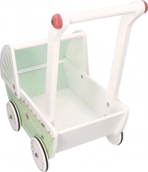 Der Wagen hat eine robuste Holzkonstruktion, die Stabilität und Sicherheit beim Spielen gewährleistet. Ideal für kleine Spaziergänger.